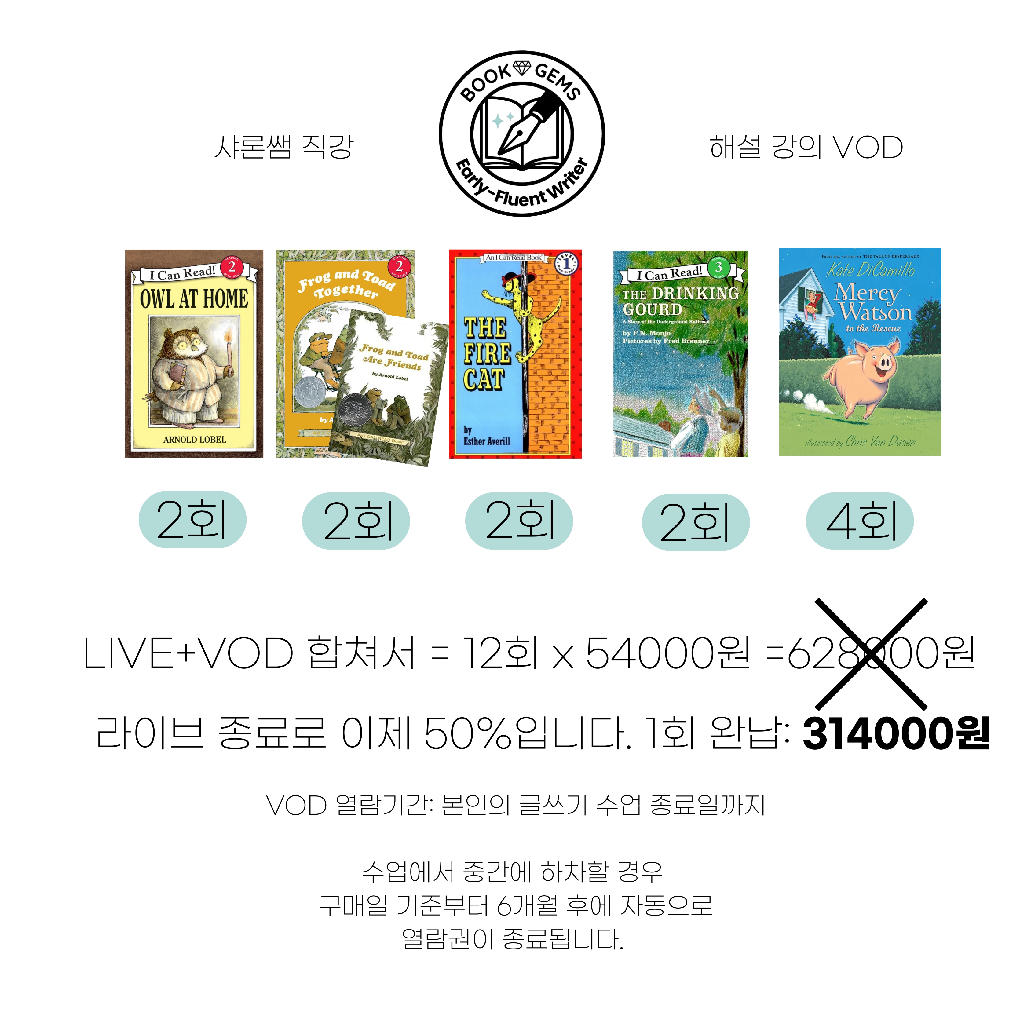 글쓰기 수업은 본 순서대로 진행됩니다. 6개월 남짓의 과정입니다. 중간에 들어올 수 없습니다. 각 책마다 봐야 하는 문법과 어휘공부가 따로 있습니다.