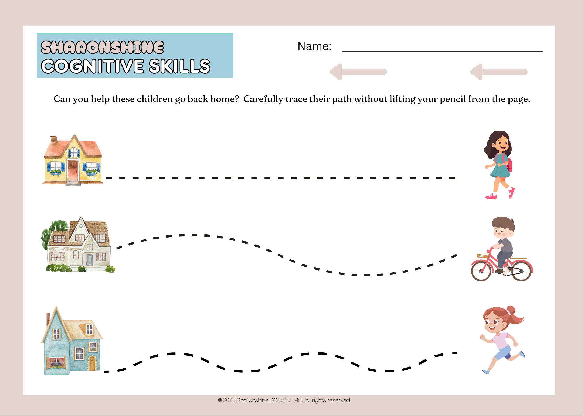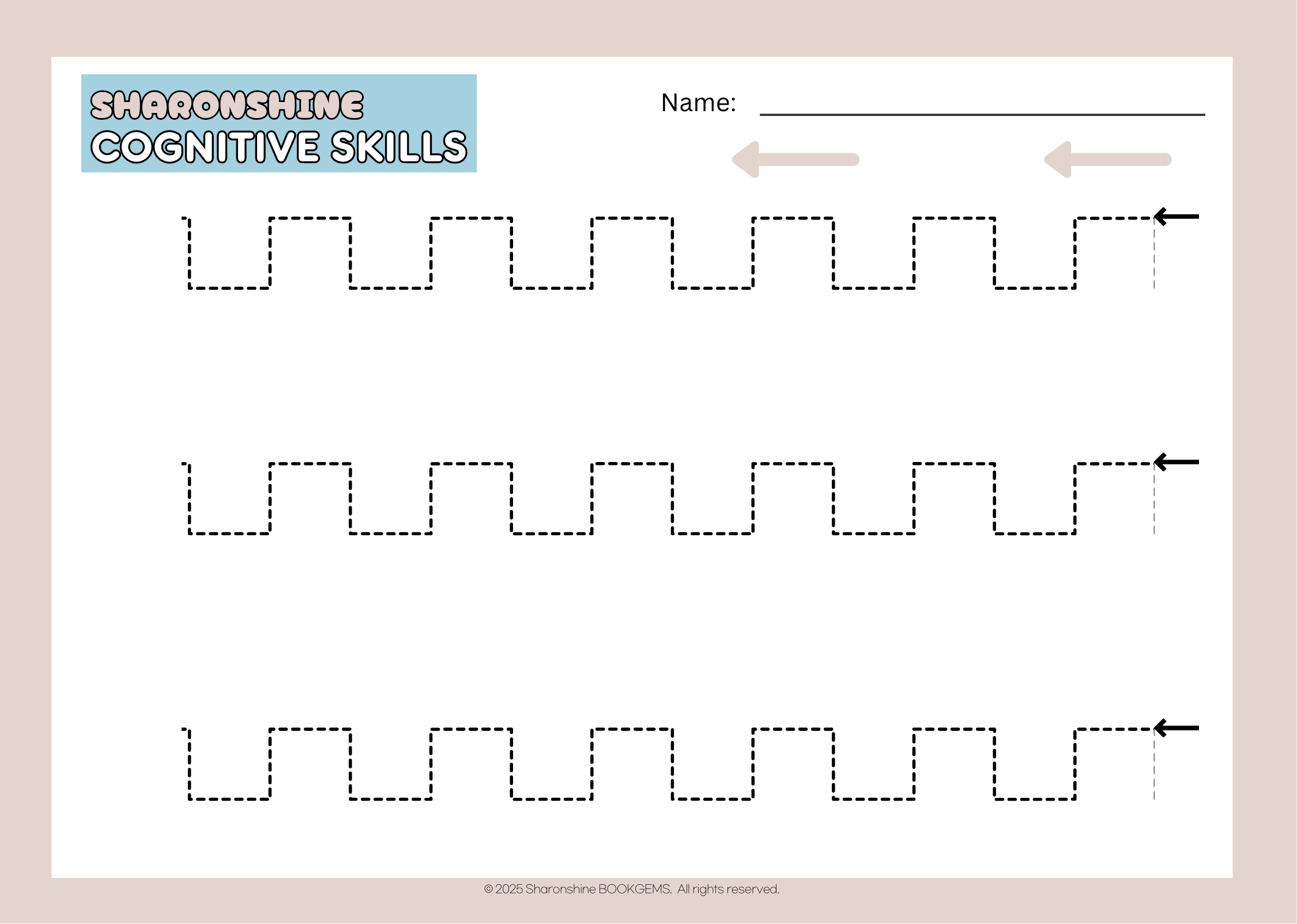 왼쪽에서 오른쪽으로 tracing을 연습하면 주로 좌뇌를 자극합니다. 이 방향은 글쓰기의 자연스러운 흐름과 맞물려 있어, 글자 쓰기, 단어 따라쓰기, 문장 구성 능력을 키우는 데 효과적입니다. 또한 세밀한 손 운동을 발달시키고, 좌뇌 중심의 언어 능력과 논리적 사고를 강화합니다. 순서대로 선을 따라 움직이므로 집중력과 순서 이해 능력도 함께 향상됩니다.