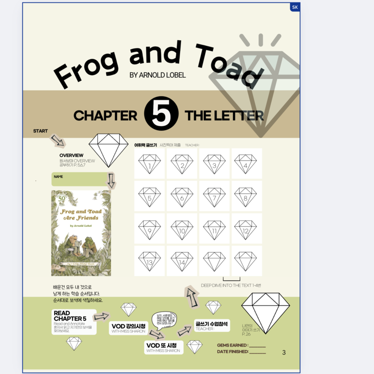 🐸목표 챕터 한 개, 워크북 한 권으로 아웃풋 극대화 경험. 나만의 이야기 쓰기가 가능해 집니다.